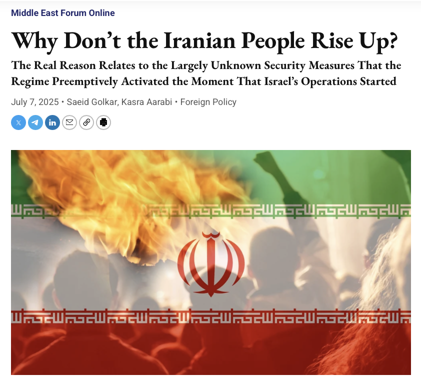 Where does this number, 85%, come from? In a poll conducted by the Netherlands-based Gamaan Institute in 2023, just 1% of diaspora Iranians expressed support for the IRGC and even within Iran only 15% were in favor. The other 85% have had enough. Possibly many more. Most diaspora Iranians will assure you the figure is nearer 95%.