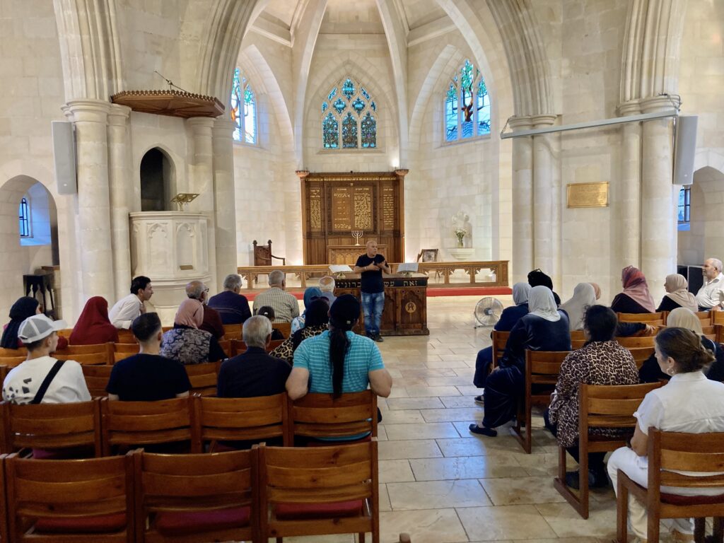 As part of our ongoing outreach both to Gazans stranded in Jerusalem receiving medical treatment in the Israeli hospitals, we have also been working on two other projects to reach out to East Jerusalem Muslims whom we have been supporting with food supplements for some years.We hosted 40 people from this group at Christ Church in Jerusalem for a meal. At the meeting we shared about the history of Jewish believers in Jesus and their work in Jerusalem among Jews, Christians and Muslims. There was also time for Sa’yeed, a Muslim background believer from the West Bank, to share his testimony during the event. A lively discussion followed with everyone joining in sharing their journey of faith. Please pray for the seeds sown within the Muslim community in East Jerusalem at this time.